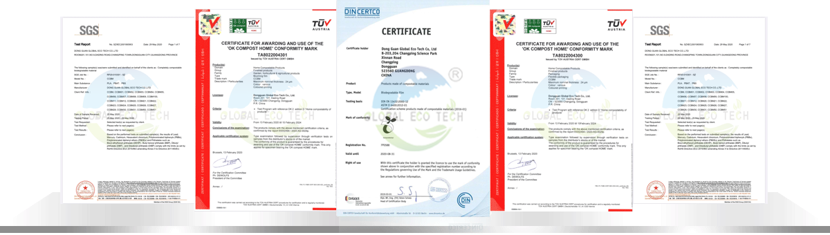 東莞全球環(huán)保科技有限公司總部位于東莞東部地區(qū)、公司致力于全生物降解材料和全生物降解秸稈復(fù)合材料的生產(chǎn)研發(fā),專業(yè)提供全生物降解 CCBM系列材科,PBAT、PBS、PLA樹脂及全生物降解膜袋、筒膜、餐具覆膜、阻隔膜、復(fù)合包裝膜、衛(wèi)生巾膜等產(chǎn)品。給塑料制造商和消費者提供一站式全品類的解決方案和技術(shù)支援。產(chǎn)品已通過德國DIN CERTCO、歐洲TUV公司OK compost HOME認證、國標認證GB/T19277.1-2011:符合歐盟EN13432、美國ASTMD6400、 BPI、澳洲ABA堆肥降解檢測標準,并通過SGS公司檢測的FDA食品接觸安全測試、ROHS有害物質(zhì)檢測、REACH檢測。我司獲得國家高新技術(shù)企業(yè)認證、通過了GRS驗廠并且取得了GRS認證,產(chǎn)品熱銷于歐洲、美國、亞洲等30多個國家。